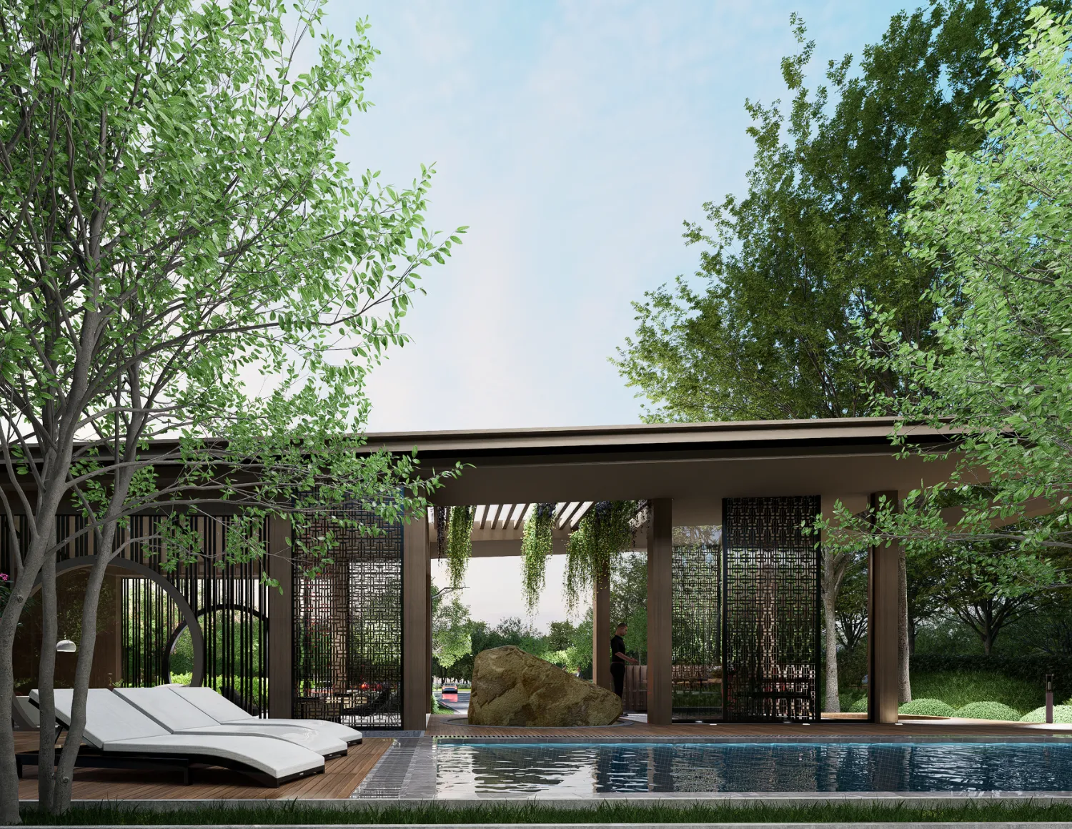 Framed by greenery and stone, this dramatic yet serene feature reflects the development’s deep connection to the land.